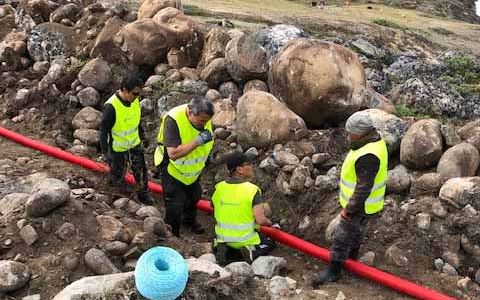 Sisimiuni Nukissiorfiit ullut pingasut ingerlanerinnaanni kabel 500 meterit missaannik takissusilik nunamut assaappaat. Suliaq tamanna Akiani qooqqukkut ingerlanneqarpoq kuuk ikaarlugu mittarfimmut aqqutaa sinerlugu.